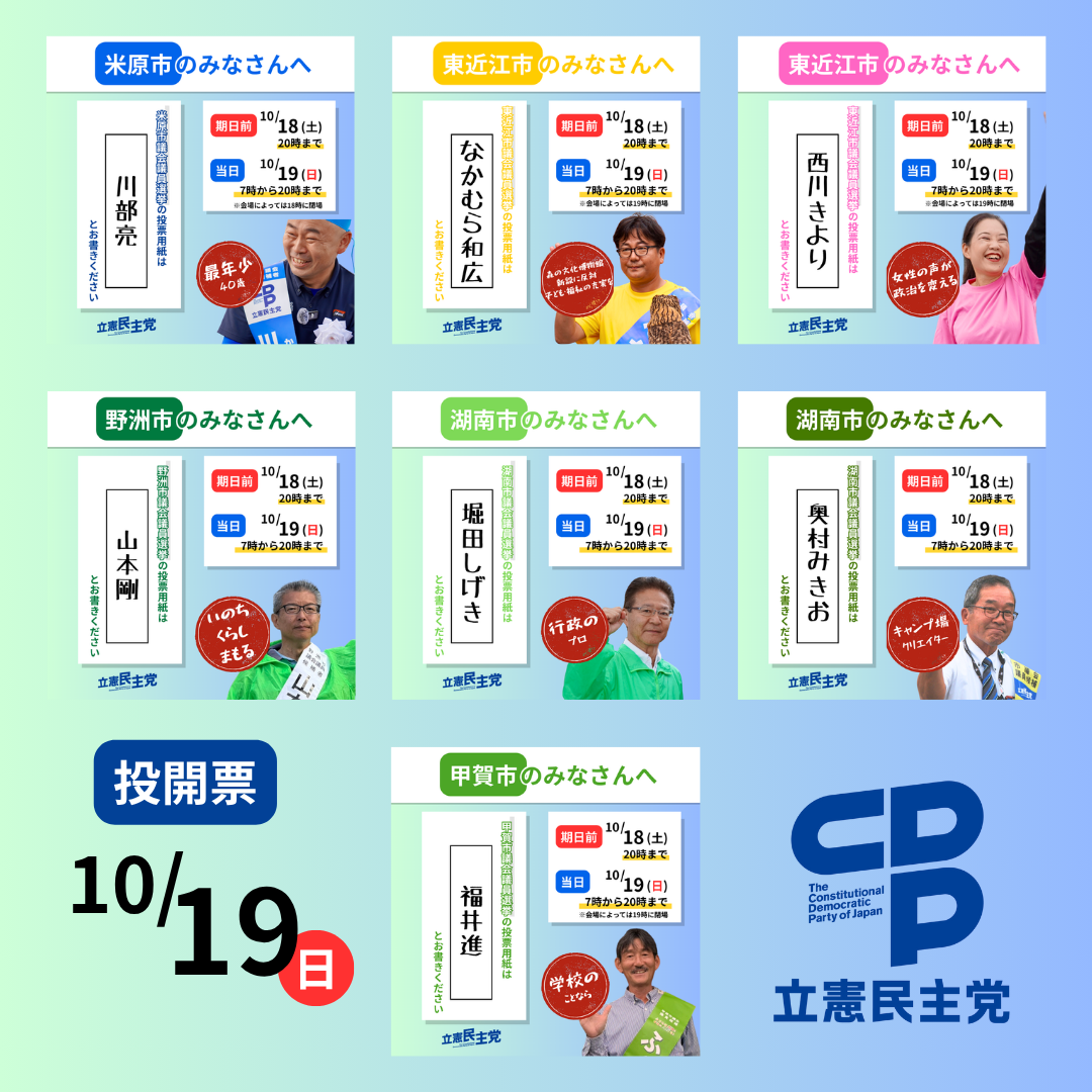 【選挙】10月19日は5自治体で市議会議員選挙の投票日です